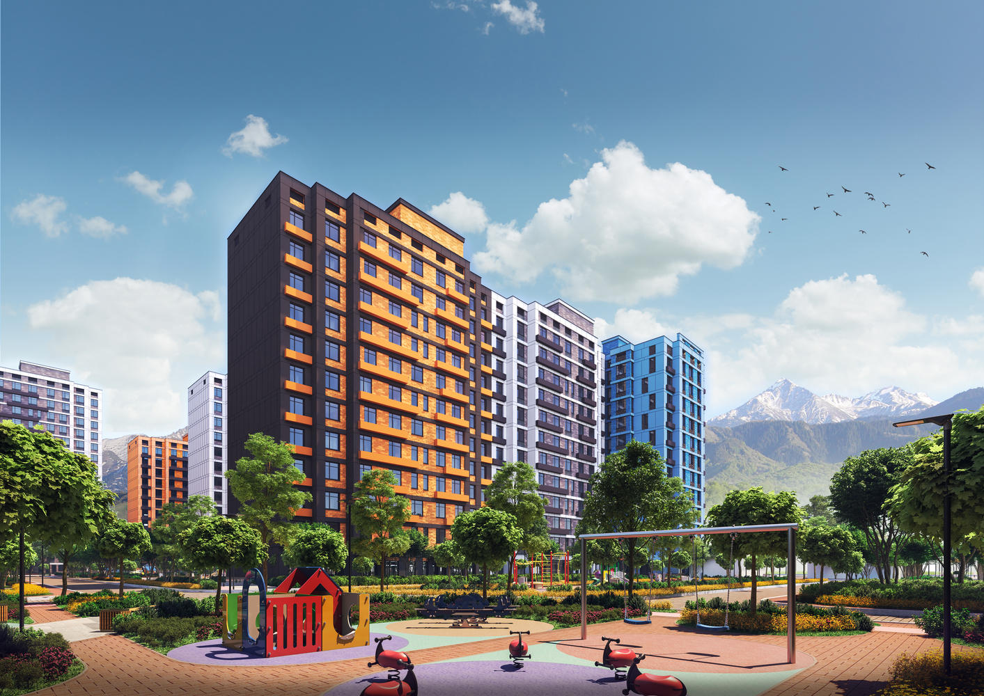 Закрывает нашу подборку ЖК комфорт-класса Ush Qonyr. Его жители всего за три минуты смогут дойти до метро «Райымбек». Также возле новостройки есть автобусная остановка, где проходит 12 автобусных маршрутов. Район застройки хорошо развит, в пешей доступности есть школы, садики, спортивные площадки, разнопрофильные магазины, кафе, медицинские учреждения, библиотека, несколько высших учебных заведений. Неподалеку находится большой живописный сквер, где можно проводить досуг. Из неприятного соседства – железная дорога в 850 метрах от ЖК.