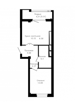 В новостройке можно купить двухкомнатную квартиру площадью 52,58 кв. м. Планировка классическая — кухня, спальня, гостиная, совмещенный санузел и лоджия. Кроме двушек, доступны также однокомнатные квартиры площадью от 35 до 53 кв. м, а также тешка 61,48 кв. м.