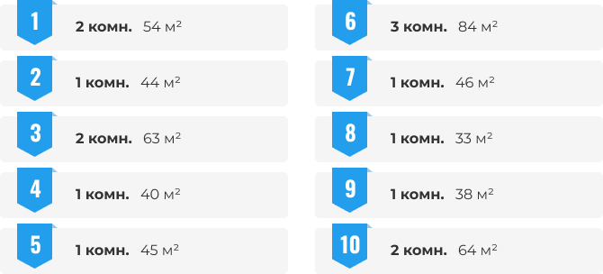 В ТОП-10 планировок в июне попала всего одна трешка, остальные места разделили между собой одно-и двухкомнатные квартиры. Тройку лидеров представляют двухкомнатные квартиры площадью 54 и 63 кв. м, которые заняли первое и третье место соответственно. И на второй позиции однокомнатные квартиры площадью 44 кв. м.