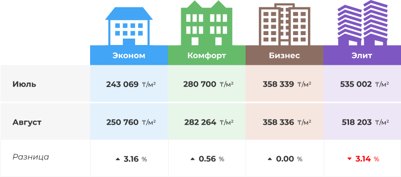 В августе наиболее заметно выросла цена квадратного метра в эконом-классе — на 3.16% в сравнении с июлем.