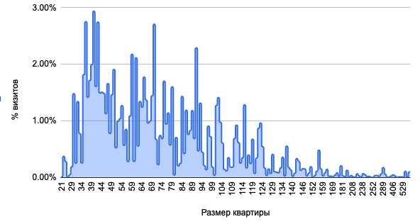 Среди 2-комнатных чаще всего ищут жилье площадью 59 и 61 кв.м.