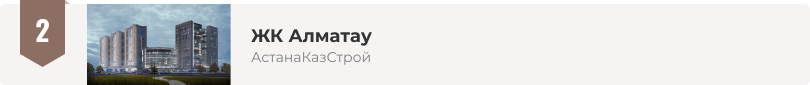 | ЖК JM City Dom-Park | JM Capital Holding | Комфорт | 305 000 тг/м2 |
