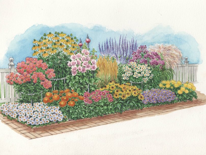 Красивая клумба — вопрос индивидуального вкуса, тем не менее для успеха затеи полезно соблюсти важное правило. В центре композиции высаживают высокие сорта цветов — например, древовидные пионы, которые начинают рано цвести и дают крупные соцветия разнообразной цветовой гаммы. Ближе к краю лучше смотрятся более низкорослые цветы, которые образуют ковер и выступают своеобразным обрамлением клумбы. А у самого окончания композиции есть смысл разместить небольшие стелющиеся по земле растения, которые скрадывают резкие очертания и визуально добавляют клумбе естественности. Для того чтобы легче сориентироваться с посадками, лучше нарисовать план и обозначить каждую область с названиями планируемых цветов — это позволит не запутаться в процессе работы.
