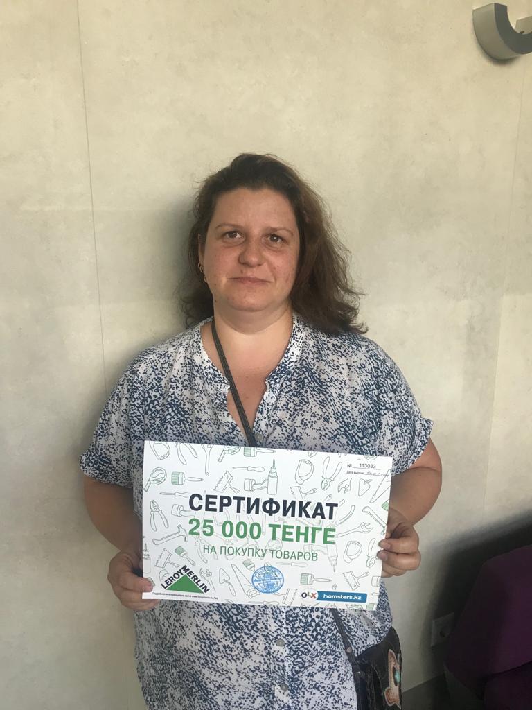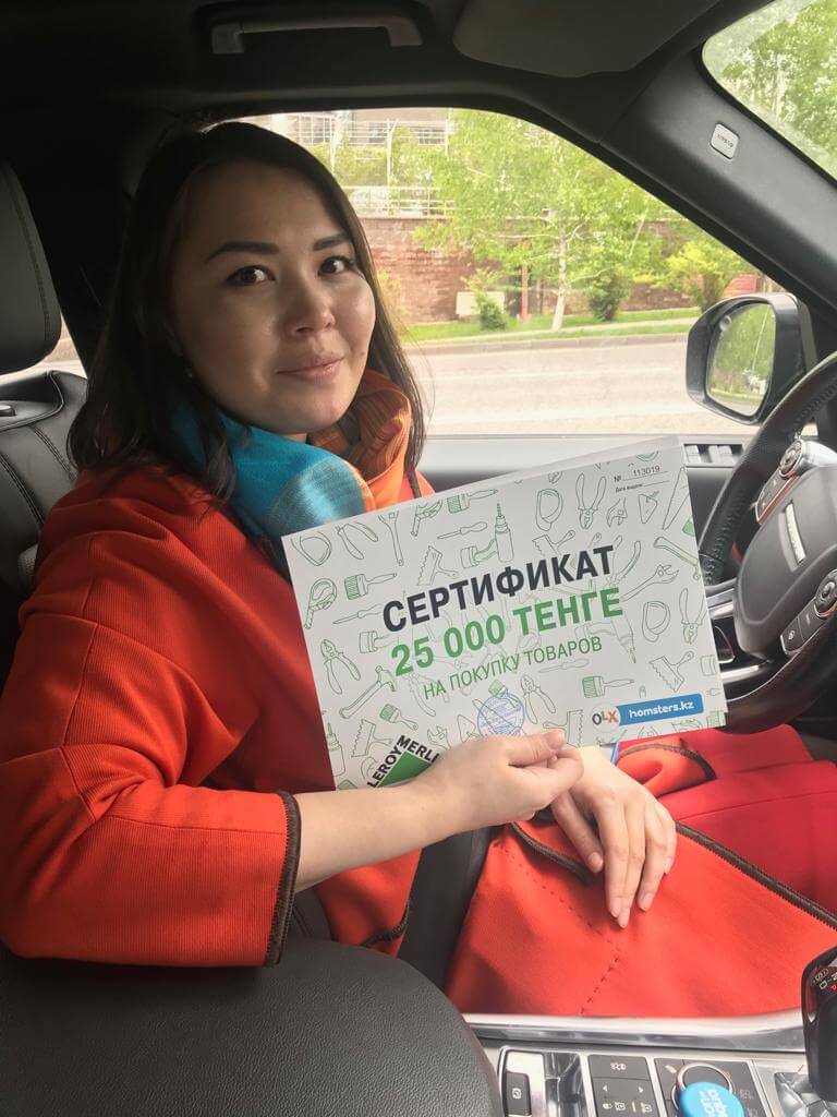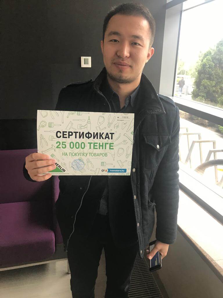 А кроме этого каждый покупатель получил сертификат от нашего партнера Леруа Мерлен на товары в размере 25 тысяч тенге.