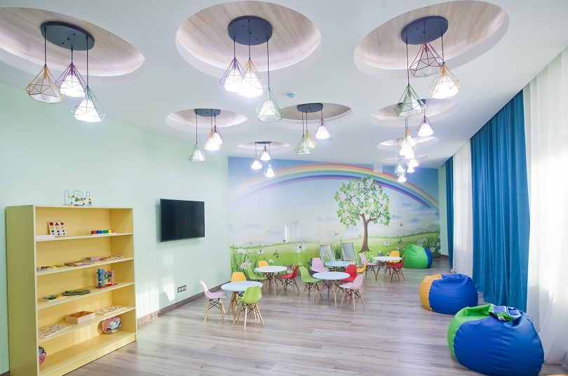 GEDG: Кешен балалар бөлмесімен жабдықталған. Құрдастарыңызбен ойнаңыз, спорттық жабдықтарға көтеріліңіз немесе сурет салыңыз, оқыңыз, мүсіндеңіз – Клуб үйінің кішкентай тұрғындары ауа-райында не істеу керектігін өздері таңдай алады. Екінші нүкте – ауладағы ойын алаңы. Мұнда элементтердің әртүрлілігі жарақаттардан қорғайтын жұмсақ жабынмен біріктірілген.