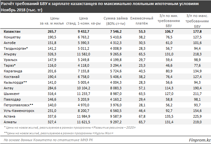 Сондықтан банктің ең қатаң талабына сәйкес, мұндай пәтерді несиеге алған қазақстандық кем дегенде 177,8 мың теңге алуы керек, ал жұмсақтары үшін – емес. 106,7 мың теңгеге кем.