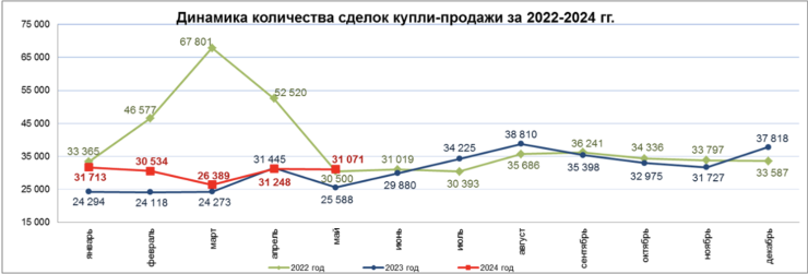 Тұрғын үй бағасының құбылуына келетін болсақ, сарапшының пікірінше, жаңа құрылыстарда да, қайталама нарықта да нарықта айтарлықтай көтерілу мен құлдырауды күтуге болмайды. Бұл өткен жылдың мамыр айынан бастап республика бойынша айына шамамен 30 мыңды құраған транзакциялар санының тұрақтылығымен расталады. Бұл факт ұсынылған OARC диаграммасында анық көрсетілген, мұнда нарықтағы сұраныс пен ұсыныстың күрт өзгерістерінің жоқтығын көрсететін шамалы ауытқуы бар сызық көрінеді.