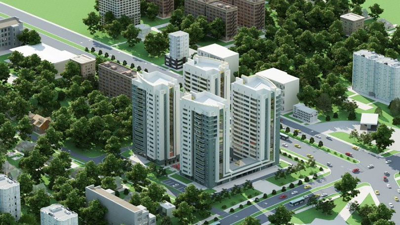 Жаңа ғимарат 9 қабатты екі үйден тұрады. Құрылысшы абаттандыруға, ағаштар, бұталар отырғызуға, көгалдарды егуге және гүлзарларды төсеуге ерекше назар аударды. Іргелес аумақта балалар мен ересектердің бос уақытын өткізуге арналған орындар бар.