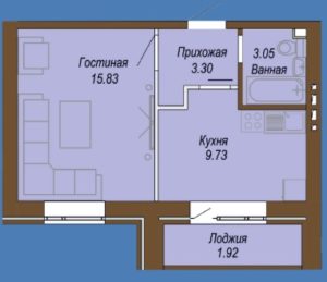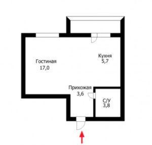 Если такой форма не подходит, можно рассмотреть классическую однокомнатную квартиру с раздельной кухней и гостиной общей площадью 33,47 кв. м, такая квартира будет стоить 9,37 млн тг.