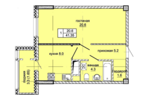 Всего за 9,92 млн тг можно купить просторную однокомнатную квартиру площадью 41,35 кв. м классической планировки с гардеробной и лоджией в многофункциональном жилом комплексе «Эльбрус» от компании «Жануя Инвест ЖСК»
